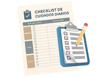 Una hoja práctica para registrar medicamentos, alimentación, actividades y rutinas esenciales. Facilita el trabajo de cuidadores y familiares, evitando olvidos y mejorando la organización. Seguridad y tranquilidad en el cuidado cotidiano.